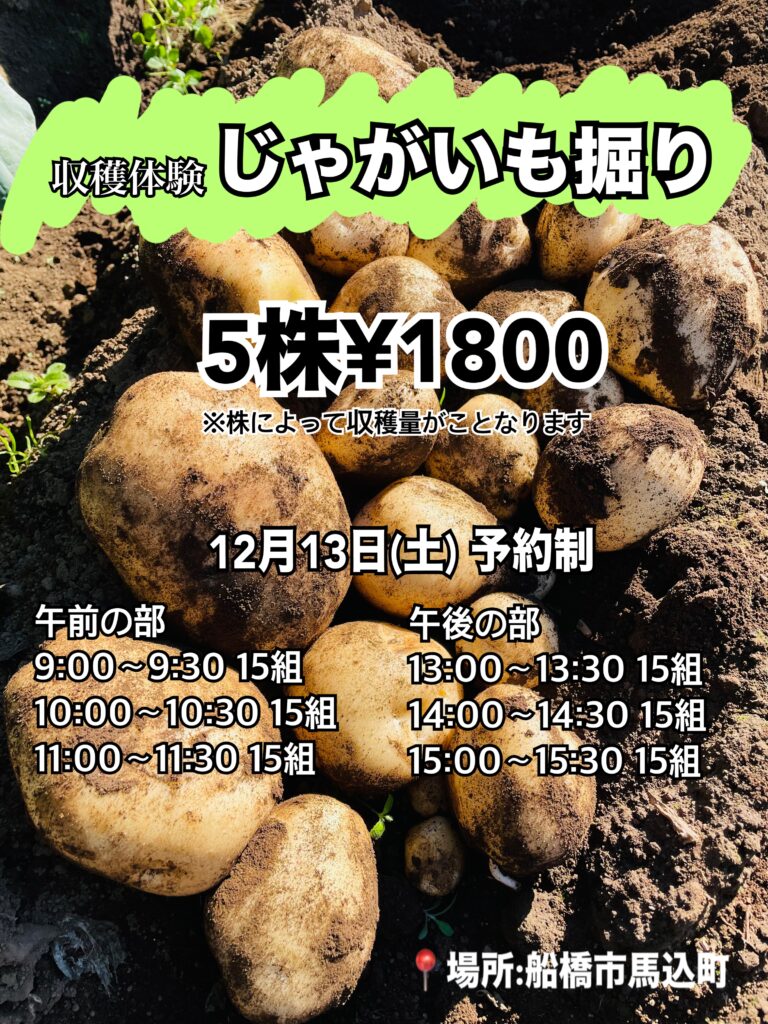 2025年12月13日(土)に船橋市馬込町にある畑でじゃがいも掘り体験を開催します。